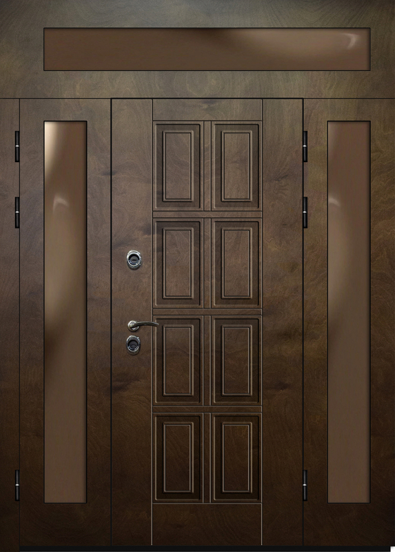 Входная дверь эконом класса с фрамугой №11 сочетает в себе надежность и доступность. Такая дверь прекрасно подходит для установки в местах с умеренной нагрузкой, обеспечивая необходимую защиту и эстетичный внешний вид. Внешняя и внутренняя отделка из МДФ с ПВХ-покрытием обладает хорошей устойчивостью к механическим повреждениям, а также отличается долговечностью. Конструкция из профильной трубы 50х25 мм и металлического листа толщиной 2 мм делает дверь прочной и устойчивой к нагрузкам. Дополнительные ребра жесткости усиливают ее стойкость. Резиновый уплотнитель с двумя контурами гарантирует защиту от холода и пыли, однако, для повышения шумо- и теплоизоляции можно заказать дополнительные опции. Эта модель — идеальный выбор для тех, кто ищет сбалансированное решение по разумной цене. Входная дверь эконом класса с фрамугой №11 от производителя: быстрое изготовление и монтаж в Люберцах, индивидуальные размеры, широкий выбор материалов и фурнитуры, официальная гарантия до 10 лет.