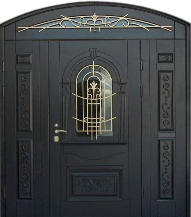Дверь входная с ковкой и стеклопакетом №28